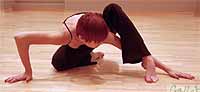 Оставаясь на коврике, повернитесь на бок. Согните ноги под углом 90 градусов. Вытяните верхнюю ногу и плавно поднимайте и опускайте ее, напрягая мышцы бедра. Постарайтесь выполнить три повтора по 10 раз. Закончив, согните ногу, помассируйте бедро и ягодицу. Вытяните нижнюю ногу и перейдите ко второй части упражнения.