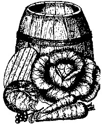 Во втором случае разрезаю вилки на четыре части, удаляю кочерыгу и погружаю капусту в кипяток на 5 мин. Готовлю отвар: сельдерей (200 г листьев и корнеплода), чеснок (50 г) и 1 ст. ложку поваренной соли заливаю двумя стаканами воды и кипячу 3 мин. Жидкость сливаю и остужаю. Чистую банку наполовину заполняю охлажденными дольками капусты, на них кладу слой нарезанной свеклы (400 г), затем сельдерей и чеснок из отвара, лавровый лист, стручковый перец и до плечиков банки – оставшуюся капусту (всего 1 кг). Заливаю отваром, всыпаю оставшуюся соль (1,5 ст. ложки), сухую зелень (150 г смеси чабера, базилика, эстрагона, укропа, мяты) и добавляю два стакана холодной воды. Накрываю деревянным кружком, прижимаю его грузом, закрываю банку крышкой и ставлю в сухое прохладное место. Когда масса осядет, еще подкладываю капусту. Вся она должна быть покрыта рассолом.