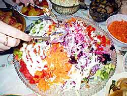 Давно пользуюсь рецептом, когда-то прочитанным из твоих, батюшка, запасников. Вот только уксусную эссенцию я заменила на сок лимона. Нужно: лук, баклажаны, кабачки, томаты, раст. масло, соль, сахар, сок лимона, лавровый лист.