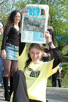 М.П.: Во Владивостоке много разных интересных газет с высоким уровнем журнализма, но единственная газета, подлинно независимая, с духом свободы и четко определенной концепцией защиты прав человека - это, конечно же газета “Арсеньевские вести”, вот почему я здесь.