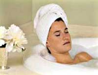 Соляные и пенистые ванны, содержащие морские минералы и препараты бурой водоросли, оказывают расслабляющее действие и к тому же очищают вашу кожу. Для большего эффекта принимайте ванну при свечах и слушайте при этом тихую музыку. Наложите на глаза ватные тампоны и расслабьтесь минут на десять.