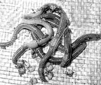 Красный навозный червяк – дождевой червь, который при высокой влажности обитает в навозных и компостных кучах, а также в кучах почвы с останками растений, выгребаемых из теплиц. Он красного цвета, достигает 8 см в длину и 0,2-0,4 см в диаметре.
