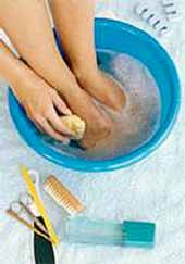 - ванночка с содой. Помогает избавиться от омертвевших участков кожи, смягчить и распарить мозоли. В горячую воду добавляем соду (1 ст. л. на 1 л. воды) - и ванночка готова;