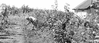 Сады с уплотнителями, по существу, скопировали приусадебные, но на больших площадях. А если заглянуть и сейчас на усадьбу удачливого хозяина в калужско-тульско-рязанской глубинке, то вы увидите, что без противоречий, вперемежку растут: смородина с крыжовником, облепихой, войлочной вишней, сливой, калиной, сиренью; крыжовник – с вишней, сливой, сиренью; жимолость – с шиповником, чубушником, сиренью; калина – со смородиной и жимолостью; шиповник и малина – с земляникой (т.е. если куст шиповника или малины на грядке земляники); земляника тоже забирается в малиновые кущи, но солнышка ей там не хватает. Самой малине не совсем по душе соседство с шиповником, облепихой, сливой, туей, но отношения с лещиной без противоречий. У малины со смородиной или хеномелисом получаются очень удачные композиции. Представьте себе смородину (например, сорт Бредторп или его производные). Она низкорослая. Если подставить опору, то получается куст высотой 0,6-0,9 м. На повислых ветвях зреют «черные жемчуга». Приходит август, убираете урожай и замечаете, что в центре куста прекрасно расположились побеги малины Бабье лето. На вознесшихся над пологом смородины верхушках зреют красные ягоды, и плодоношение продолжается до самых поздних (октябрьских) заморозков. Собрал урожай, срезал побег у самой земли – и опять куст смородины в одиночестве готовится к зиме. Нет конфликта, зато есть дополнительный урожай ягод, мед и перга в улье (малина – отличный медонос, особенно ценный в осенний период), да и красиво: букет веток с ягодами малины в малахитовой вазе куста смородины.