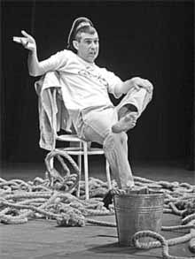 В этом тонком общении с залом есть нечто от телевизионного феномена. На спектакле такое ощущение, что автор-исполнитель делится мыслями только с сидящими в зале. И невозможно представить, что он еще с кем-то может так искренне и доверительно разговаривать.