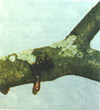 Защищайте деревья от солнечных ожогов, морозобоин, своевременно залечивайте раны после обрезки. Особое внимание обращайте на лечение ран, из которых уже выделяется камедь. Зачищайте их до здоровой ткани с захватом 4-5 мм, обрабатывайте 1%-ным раствором медного купороса (10 г на 1 л воды) и замазывайте тонким слоем садового вара.