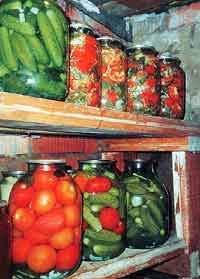 Плоды промываю в холодной воде и обдаю кипятком. Старые (0,5 кг) пропускаю через мясорубку и подсаливаю (100 г). Молодые (1 кг) укладываю в трехлитровую эмалированную кастрюлю, переслаивая крапивным листом и заливая каждый слой огуречной кашицей. Сверху укрываю листьями крапивы и кладу гнет. Выдерживаю три дня в комнате, а затем выставляю в погреб. Огурчики получаются изумрудно-зеленые. Если переложить их в банку и закрыть полиэтиленовой крышкой, огурцы будут храниться около двух месяцев. Для длительного хранения использую другой рецепт, который оставляет неизменным изумрудный цвет огурцов. Зеленцы укладываю в кастрюлю, переслаивая листьями хрена, смородины, вишни, зонтиками укропа и другими пряными травами. Заливаю горячим рассолом (на 10 л воды - полпачки соли, стакан водки и щепотку сухого чабе-ра) и сутки держу в тепле. Затем огурчики раскладываю по банкам, заливаю процеженным рассолом и опускаю в погреб.