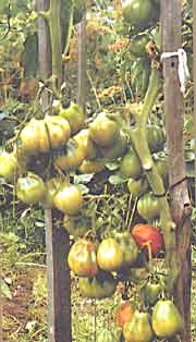 Число уснувших бутонов зависело также от освещенности растений. На кустах томата, расположенных на западной стороне грядки, где цветки освещены солнцем только во второй половине дня, нормальных плодов было вдвое меньше. Связано это с тем, что на восточной стороне после ночи цветки быстрее прогреваются и лучше опыляются с 8 до 11 часов утра. Если же грядка затенена, например сараем, особенно в утренние часы, оплодотворяется меньше трети цветков, расположение же растений по сторонам света не влияет на количество завязавшихся плодов.