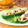Огурцы, фаршированные c ветчиной. На 5 огурцов – 150г ветчины, 2 крутых яйца, 2 ст. ложки рассыпчатого отварного риса, пучок зеленого лука, 2 ст.л. рубленого укропа, 1 ч.л. лимонного сока, 100г натурального йогурта, соль и черный молотый перец – по вкусу. Мытые огурцы разрежьте вдоль пополам и аккуратно достаньте ложкой мякоть.