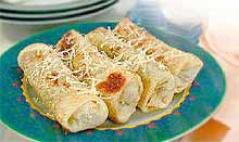 500 г нежирного говяжьего фарша (можно использовать куриный или индюшачий фарш), измельчённая луковица, 30мл подсолнечного масла, 100 г измельченных орехов, баночка томатной пасты, 1 ч.л. карри, щепотка сахара, 6 блинов, которые можно заменить лавашем. Обжарьте в глубокой сковороде лук в масле, добавьте карри и всё хорошо перемешайте. выложите сюда фарш и, постоянно помешивая, доведя его до полуготовности (он должен потерять красный цвет). Добавьте томатную пасту , сахар и орехи, дайте закипеть и уменьшите огонь, посолите-поперчите по вкусу, накройте сковороду крышкой и потушите минут двадцать. Перед подачей разложите фарш по блинам, заверните трубочки и подавайте с салатом из свежих овощей.