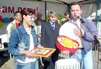 2 – Олег Петрук вручает в подарок чайный сервиз.