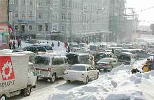 Мы вместе с другими машинами медленно проследовали мимо 629-го километра Федеральной магистрали… Шел двенадцатый час ночи. Машины едва продвигались по снежному месиву. И, наконец, встали. По многокилометровой пробке мотался единственный крепыш-милиционер в попытках хоть как-то помочь водителям.