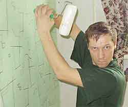 Как избежать: проверьте, впитывает ли поверхность стены влагу, смочив ее водой. Если капли остаются, надо сошлифовать верхний слой стены.