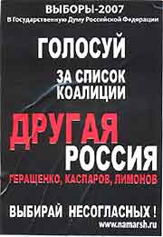 Собственно говоря, содержание листовки – просто понты. Ну что значит «Голосуй за список коалиции Другая Россия»? Центризбирком их список не зарегистрировал, так же как и партию, и в выборах они не участвуют. Тем не менее милиция, которая в этих выборах участвует (в качестве подсобной силы, естественно, а не списком), быстро ситуацию просекла и Надежду Корчевную задержала. Ее отвезли в Ленинский РОВД и составили протокол об административном нарушении.