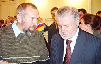 На фото Синицына Н.И.: Максимович В.П. докладывает Председателю Совета Федерации Миронову С.М. об экологической обстановке сложившейся вокруг г. Фокино.