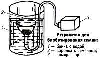 Огородники часто барботируют семена в холодной воде. Однако положительный результат можно получить лишь при барбо-тировании семян в воде, нагретой до 20°С.
