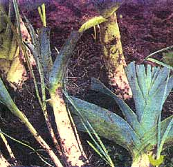 ЛУК-ПОРЕИ - двулетнее растение. В первый год жизни формируются плоские длинные листья, которые, плотно смыкаясь в нижней части, образуют ложный стебель, называемый ножкой. На второй год выбрасывается высокий прямой цветонос и завязываются семена.