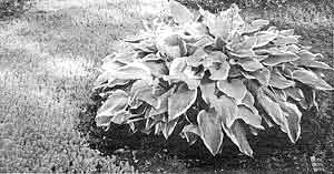 Участки из почвопокровных растений являются прекрасным фоном для ярких цветущих групп из высоких кустов астильбы, роджерсии, пионов, золотарника, колокольчика, лилейника. Так, например, очень интересен в посадках на первом плане ясменник при размещении на втором плане хосты. Его ярко-зеленая ажурная листва подчеркивает красоту ее крупных тяжелых листьев.