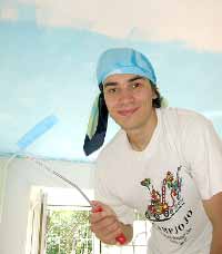 И вот, самое время приступать к финишной отделке. Для окраски потолков как нельзя лучше подходит водно-дисперсионная краска. Мы наносим ее на потолок. Специалисты рекомендуют перед окраской нанести один слой сильно разведенной с водой краски. Получится что-то вроде предварительной грунтовки.