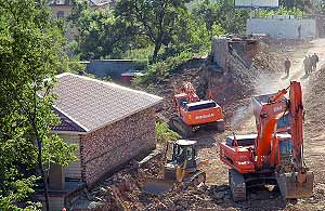Этот коттедж первым принял на себя удар – строительство началось внезапно непосредственно за его северной стеной. Предупреждены хозяева не были, никто не вел с ними предварительных разговоров об условиях переселения. А просто начали однажды бабахать за стеной бульдозеры, все ближе подходя к стенам.