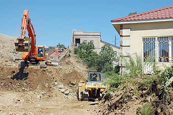 Троих детей, из которых, двое малышей и один школьник, пришлось в срочном порядке «эвакуировать». На сегодняшний день котлован подтесал дом под самый фундамент. Коттедж и земля под ним - частная собственность, потому с хозяевами все-таки начались недавно переговоры об условиях переселения. Да и сами люди здесь за себя постоять могут, и юриста нанять. Но, судя по тому, что хозяева в своем доме продолжают жить, несмотря на невыносимый круглосуточный рев бульдозеров, грохот камней и облака пыли за родными стенами, переговорный процесс не окончен. Да и немыслимо это - найти такой же новый участок под коттедж в центре города, с видом на бухту, с зеленым двориком для детей за пару недель!
