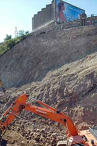 Опасный сосед появился и у городской достопримечательности - фуникулера. Около его верхней станции глубина выемки грунта уже не менее 15 м.