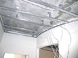 Прежде чем повесить на металлическую обрешетку потолок из гипсокартона, нужно себе ответить на вопрос: сколько вы хотите световых точек, а затем подвести электропроводку.