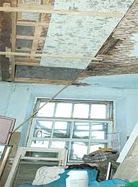 Обрушившийся потолок в комнате Ерофеевой Ирины Кузьминичны - случай не первый и, по всей видимости, не последний. Подобное пережили практически все жильцы ветхого барака. У соседа, молодого человека по имени Руслан, потолок разбух и созрел, словно чирей, обещая прорваться в любую минуту.