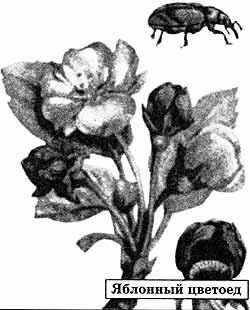 В большом количестве отправляются в укромные уголки яблонная плодожорка, яблонный цветоед, яблонная медяница, разные виды тлей (на ягодниках). Закончившийся сезон был благоприятен и для развития вишневого долгоносика.