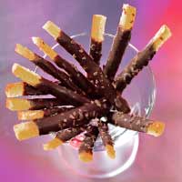Возьмите 400 г шоколада, 200 г цукатов — можно самых разных по вкусу, или сухофруктов – изюм, сушеные сливы, вишни, бананы. Шоколад разломайте на кусочки и разогрейте – кто на пару, кто в микроволновке. В горячий шоколад добавляем цукаты или сухофрукты, перемешиваем. Эту шоколадную смесь выкладываем на пергамент или фольгу – пусть застынет, затем нарежьте эту массу кусочками. Очень вкусно и неожиданно!