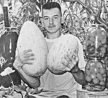 «Как-то проходя по базару, – пишет он, – мы с сыном обратили внимание на крупные ароматные дыни, похожие по форме на яйцо. Разговорились с продавцом и узнали, что их называют Аджуйские. Дынями я увлекаюсь давно, испытал много сортов. Естественно, загорелся желанием развести и эти. Купил 11-килограммовый плод, выделил, просушил и отобрал полновесные семена.