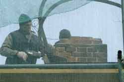 Последние недели здание напротив, по ул. Пограничной, 12-в, стоит в зеленой сетке. Реконструкция? Как сказать. Сегодня с утра все обитатели двора и посетители увидели, как двое рабочих (судя по виду, гастарбайтеры) отбойными молотками сковыривают с дома, которому более ста лет, кирпичи и сбрасывают вниз. Реконструкция? Какая-то странная.