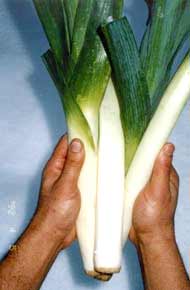 Уборку лука-порея начинают с того, что отгребают мульчу и землю, окружающую основание растения. Затем садовыми вилами с плоскими зубьями осторожно поддевают растение и вытаскивают из грядки за листья. При этом вилы нужно подвести под растение, отступя на несколько сантиметров от основания, а затем надавить на рукоятку, как на рычаг. У вырытого растения необходимо стряхнуть с корней землю, а затем удалить корни, отрезав вместе с ними чуть больше одного сантиметра нижней части стебля. После этого следует ободрать омертвевшие наружные листья, а остальные укоротить, оставив только несколько сантиметров выше кремово-белой верхней части стебля.