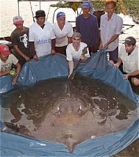 Во время своего пребывания в Тайланде, рыбак Ян Велш из Альдершота, Хэмпшир, выловил крупнейшую в мире пресноводную рыбу. Ян потратил 1,5 часа на борьбу с гигантским скатом. А для того, чтобы вытащить рыбу из воды, потребовались совместные силы 13-ти взрослых мужчин. Два метра с лишним в длину, так же как и в ширину, и с трехметровым хвостом, этот скат побил мировой рекорд самой крупной пресноводной рыбы, выловленной когда-либо. До недавнего времени рекордсменом оставался 292-килограммовый сом, который был пойман в 2005 году.