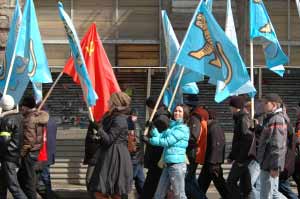 «А чё за праздник-то?» – спросил у меня мужчина средних лет. Он стоял с женой на остановке «Цирк» и смотрел на приближающуюся колонну с красными коммунистическими флагами и флагами «ТИГРа».