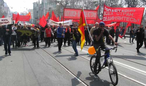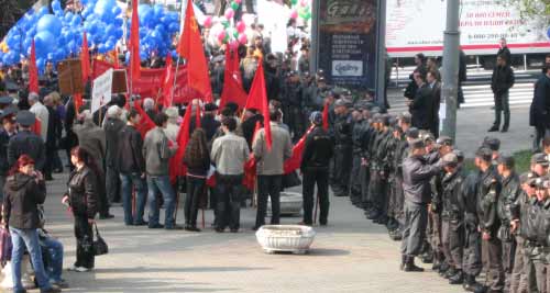 Во Владивостоке сегодня прошла многотысячная Первомайская демонстрация. По официальным оценкам в ней приняли участие более 50 тысяч человек. Приморские коммунисты и активисты ТИГРа попытались принять участие в общей демонстрации, но были блокированы милицией.