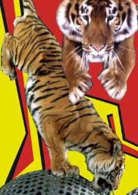 Громадные тигры, чей вес достигает 320-340 килограммов, послушно выполняют команду дрессировщика, легко двигаясь на больших зеркальных шарах, проделывают удивительные пируэты. Все это действие происходит под классическую музыку: оркестр исполняет произведения Чайковского, Мусоргского, Глинки. В самом финале представления Мстислав Запашный вместе с тигрицей Джиной без страховки поднимется под купол цирка на огромном шаре, символизирующим Землю.