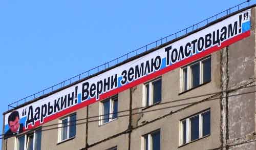 Члены ТСЖ Толстовцы собрались и решили: повесим первомайские призывы на наших домах! Очень конкретные призывы к конкретному человеку. То есть, насколько я знаю, изначально решено было обратиться к абстрактному губернатору. Но общее собрание не захотело абстракций. К Дарькину! К Дарькину!