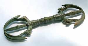 На выставке представлены уникальные археологические предметы, найденные во время раскопок на территории Краснояровского городища, начиная с 1995 г. Среди них одной из самых загадочных бронзовых находок является древний буддийский жезл «ваджра». Конструкция его напоминает тетиву натянутого лука со стрелой. Обычно ваджра вставлялась в руку статуи Будды, либо ею владел хранитель храма.