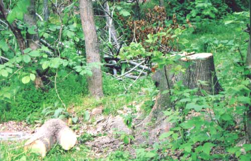 Неожиданно 19 мая этого года приехали лесозаготовители, которые стали выпиливать и разделывать деревья, мотивируя свои поступки тем, что значительная часть сквера является их собственностью и будет вырублена, в том числе и деревья – памятники природы. Когда возмущенные жильцы пригрозили вызвать милицию, те погрузили на машину спиленные чурки и быстро уехали, даже бросив подпиленные, но еще стоящие деревья.