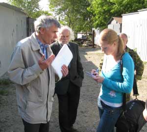 На собрание гаражников пришла толпа милиционеров, но они тусовалась в отдалении. Впрочем, один милицейский чин к гаражникам подошел, говорил, что разберется, но смотрел при этом в землю. Почему бы это?