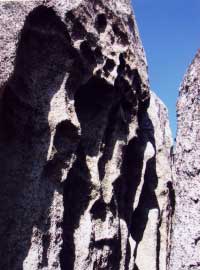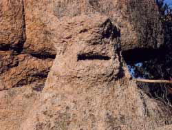 Также здесь можно встретить ЛИКИ ЛЮДЕЙ (фото 3). На территории «Города драконов» довольно часто встречаются рельефные изображения лица человека, размерами около 5-8 метров по длине и 3-4 метра по ширине. Изображения выполнены на ровных верхних скальных площадках и хорошо видны только с высоты птичьего полёта. Экспедиция Кабелева обнаружила семь таких изображений, все они выполнены в одном стиле. Интересно, что «древний скульптор» повсюду умело предусмотрел в углублениях рельефа стоки для воды, что предохраняло скальное изображение от разрушений.