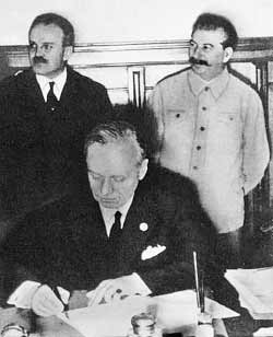 Кроме того, 23 августа – день подписания пакта Молотова-Риббентропа (см. фото) – станет международным днем памяти жертв сталинизма и нацизма. Кроме того, в документе от России как участника ОБСЕ требуют отказа от демонстраций во славу советского прошлого и избавления от структур, «приукрашивающих историю».