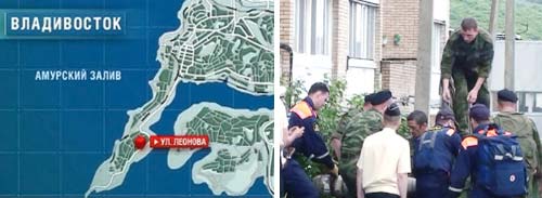 Празднование Дня Военно-Морского Флота, который отмечается 26 июля, началось с ЧП. Во Владивостоке в газон близ девятиэтажного жилого дома по улице Леонова, 64 врезалась болванка, выпущенная с корабля, находящегося в Амурском заливе.