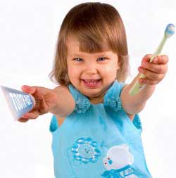 a Для чистки зубов могут быть использованы зубная паста (без фтора) или сода. Слегка подсоленная вода лучше всего подходит для ухода за деснами.