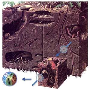 В среднем, половина всего свежего органического материала превращается в гумус за два месяца благодаря деятельности бактерий, грибов, насекомых и животных, обитающих в верхних 15 см поверхностного слоя почвы.