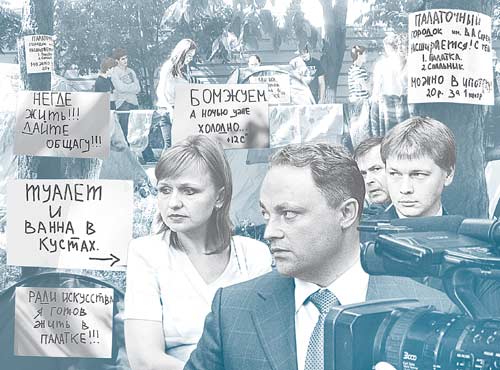 Директор училища унесся за телефоном, а мэр стал оправдываться. В течение четырех часов студенты говорили всем, кто спрашивал (сколько телекомпаний тут побывало? Не меньше четырех! Да и в этот момент съемочная группа ТНТ была здесь и вовсю снимала мэра), что гостинки-общежития забрал город. И Пушкарев пустился в объяснения, что на самом деле не забрал, а еще в 2007 году училище не продлило аренду, а теперь администрацию обязали предоставить жилье нуждающимся, судебные приставы наложили арест…