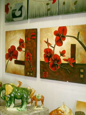 Здесь работы и других китайских мастеров: изящные вазы, панно, фигурки животных и добрых божков – предметы декоративно-прикладного искусства, выполненные в самых разнообразных техниках. Художники постарались угодить и главному зверю наступившего года, тигру. Его можно увидеть как на традиционных свитках, так и в красочных календарях.