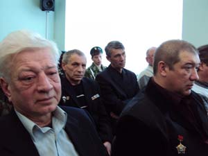 Воины-интернационалисты с членами клуба военно-патриотического воспитания «Подвиг», с главой Дальнереченского городского округа М.Ю. Филипенко, – (в переднем ряду в центре), слева от него начальник Дальнереченского гарнизона М.Н. Усик, военком А.А. Бурлачко, справа воин-интернационалист, кавалер ордена Красной Звезды Леонид Степанович Шилов.