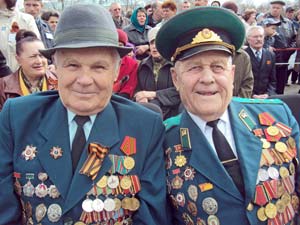 Сегодня особенно строго сдержанны солдаты Отчизны своей, воины 3-го Белорусского фронта Сергей Михайлович Киберев, Иван Иосифович Украинский. Им уже за 80 лет. Но, ветераны стараются не стареть душой. Их тоже украшают правительственные награды.